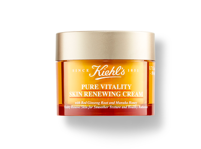 Formulated with New Zealand Manuka Honey and Tibetan Red Ginseng Root, our fortifying and revitalizing moisturizer helps skin renew itself for radiant skin with a youthful-looking glow. With a lightweight, honey-like texture, this cream melts onto skin to help fortify skin’s barrier to revitalize dull skin and help skin bounce back from visible signs of aging. Made with 99.6% naturally derived* ingredients, our cream with Manuka Honey is packaged in a sealed jar to help protect the formula’s potency. Smooth on Pure Vitality Skin Renewing Cream to reveal smooth, radiant, glowing skin.